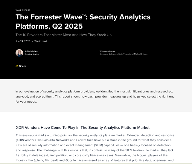 The Forrester WaveTM: Security Analytics Platforms, Q2 2025